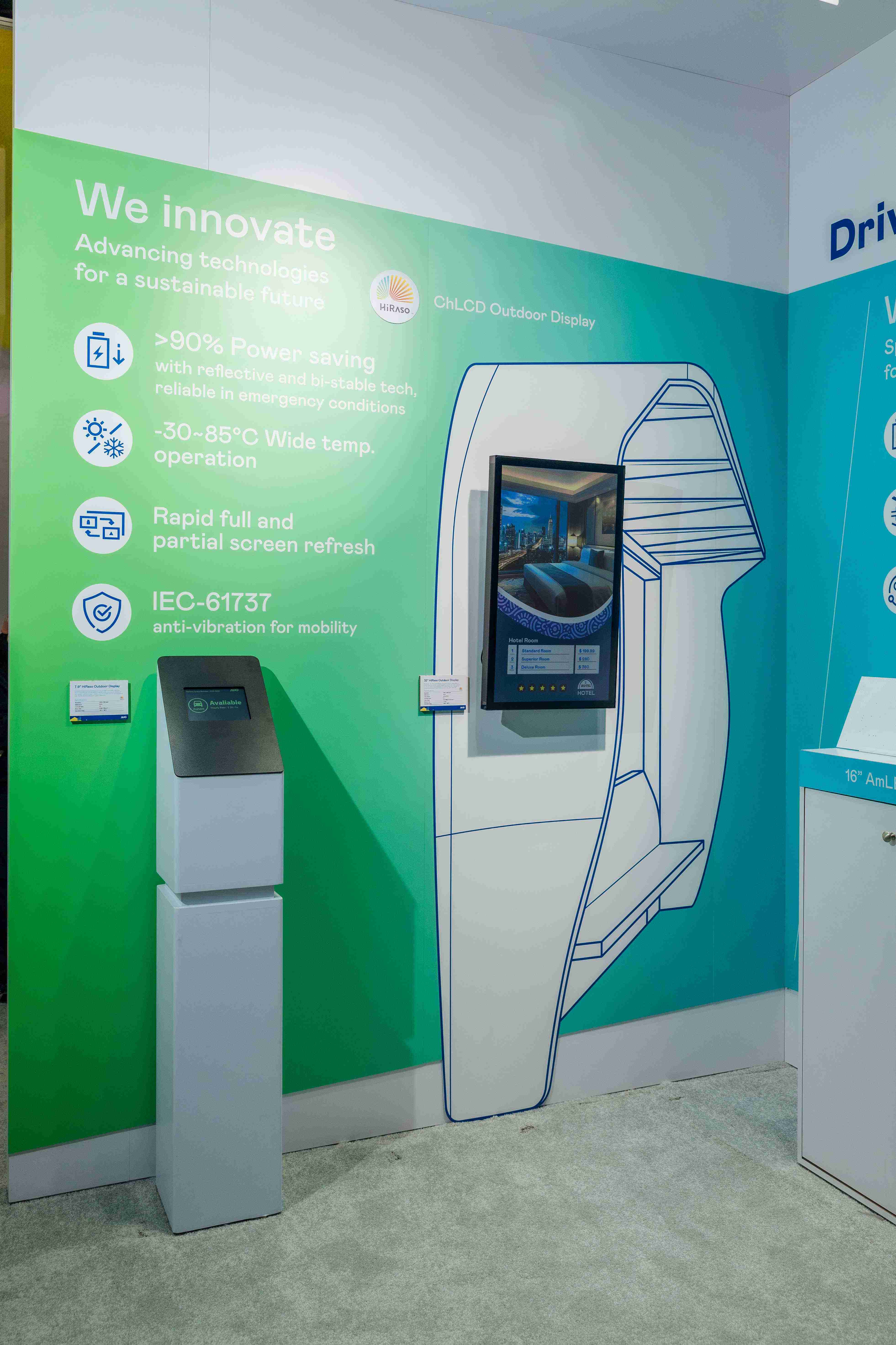 HiRaso胆固醇液晶显示器运用反射环境光线的方式,,,,呈现影像显示时零耗能的环保省电诉求,,,光线愈强愈能呈现绝佳的色彩饱和度及显示效果,,同时在摄氏-30度至85度间宽温的使用优势,,为户外电子看板的新首选。。