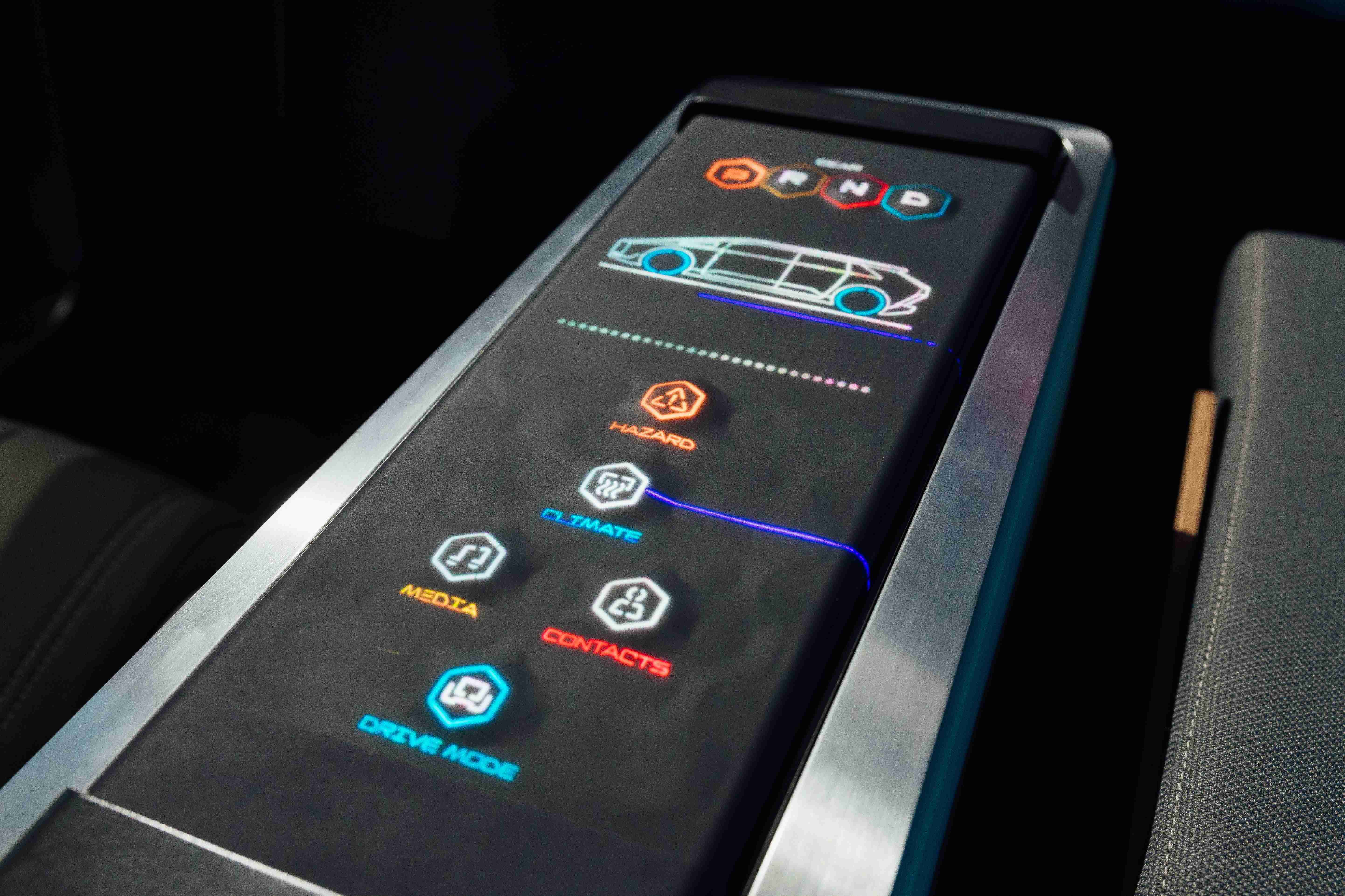 多变形态中控显示(Morphing Center Control)拥有动态变化的表面,,,,平时常态显示车辆功能,,进一步操作时,,,则会隆起成为3D 按钮,,并在触控时以震动回馈,,以精细的操作开创人机互动新境界。。 ![]()