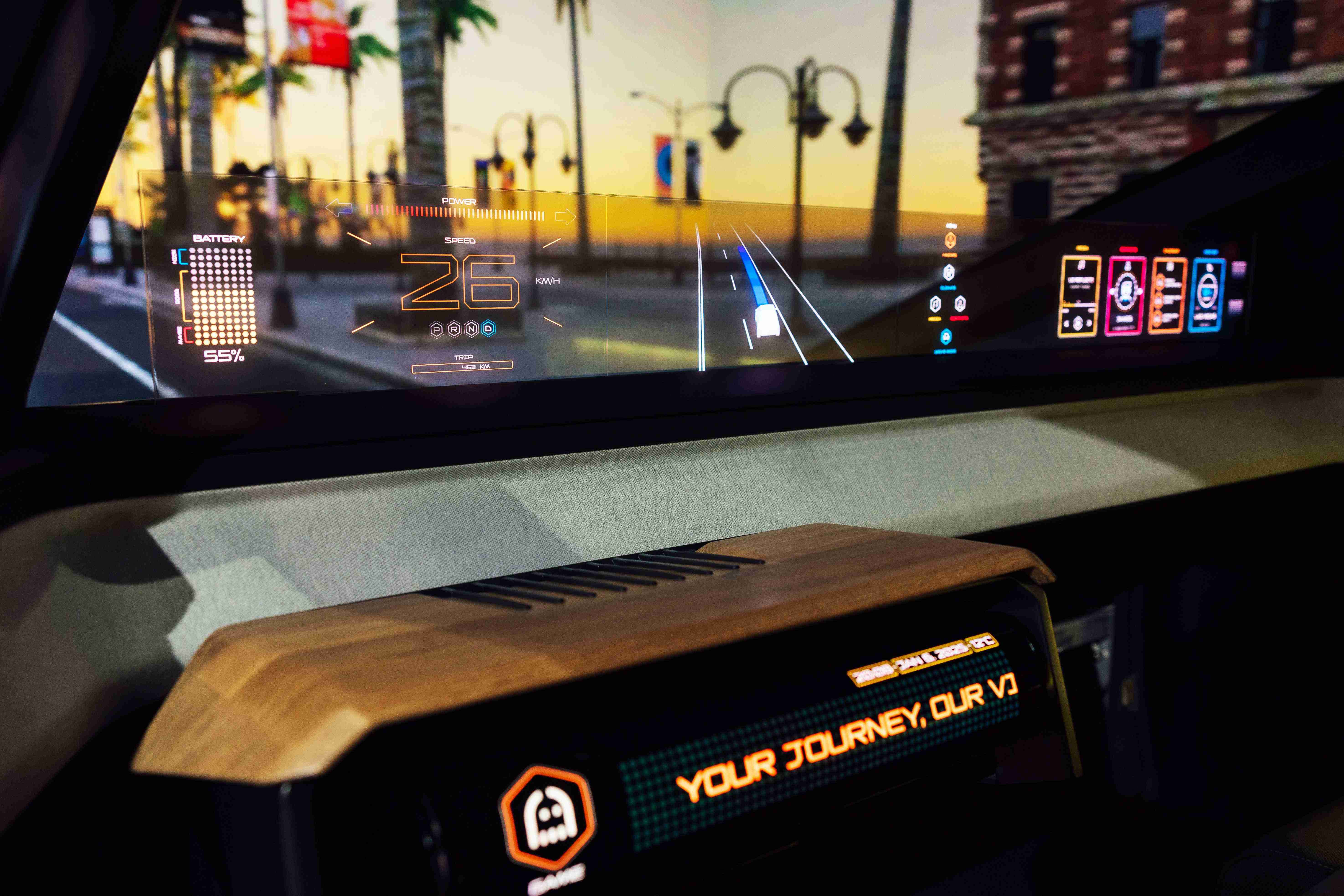 幻境全景天幕(Virtual Sky Canopy)将无缝拼接大型化的透明Micro LED显示器融入至天窗,,,,带来沉浸式体验,,,将人机介面扩展至整个座舱。。 财神娱乐光电以人性化的设计引领直觉式的人机互动,,,,透过多变形态中控显示(Morphing Center Control)、、、、隐藏式智驾介面(Foldable Cruise Pilot)等解决方案,,,,让乘用者依据自身需求调整、、控制座舱内所需功能。。